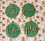 Pack of 4 ornaments two different colors green and red add the names at the check out.